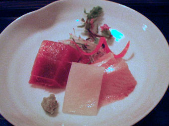 すりおろしたカブを鯛の上にのせて蒸し、葛あんやすまし汁をかけた料理です。とろみ加減がバツグン。蕪のシャリシャリした食感も良いですね。